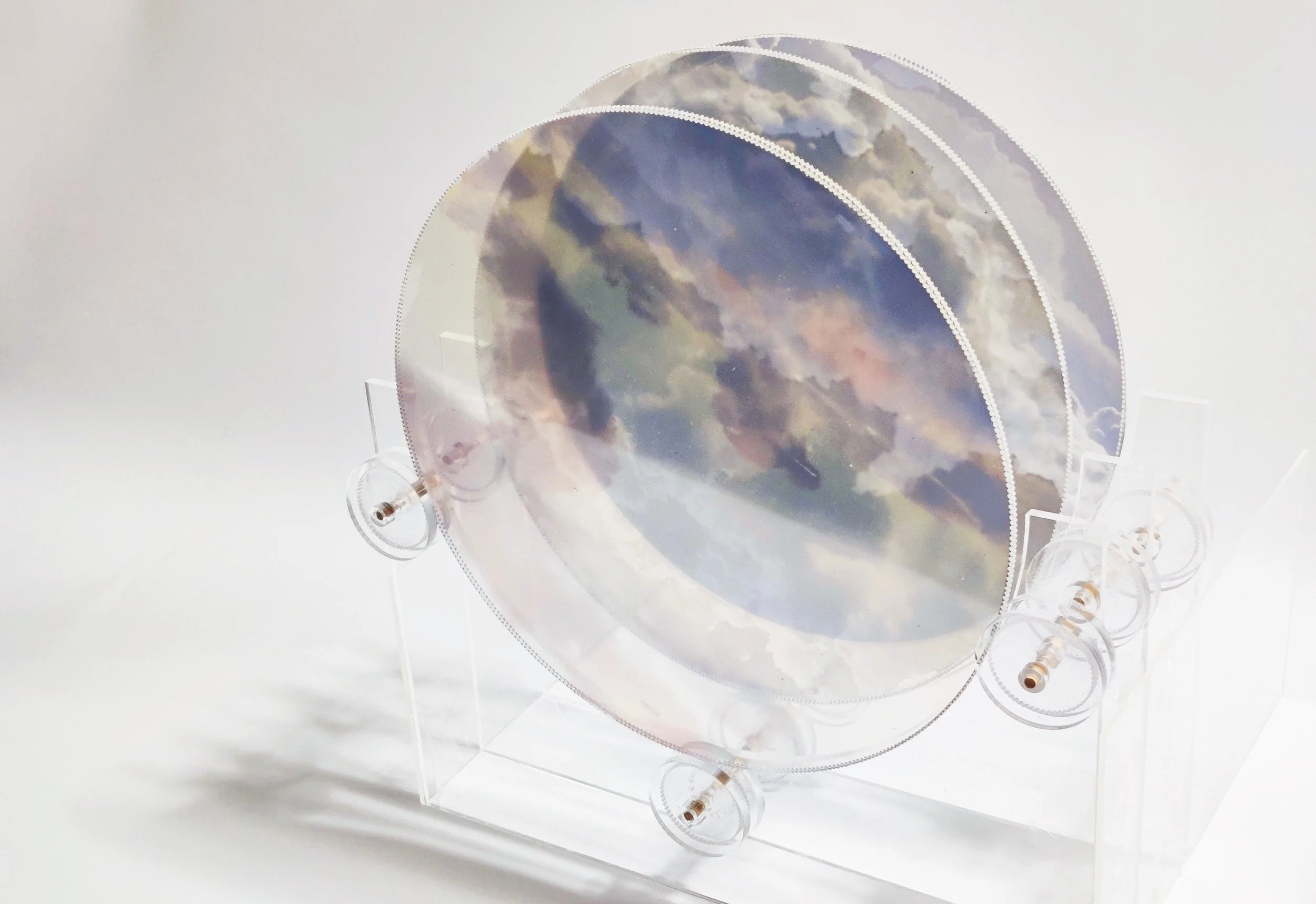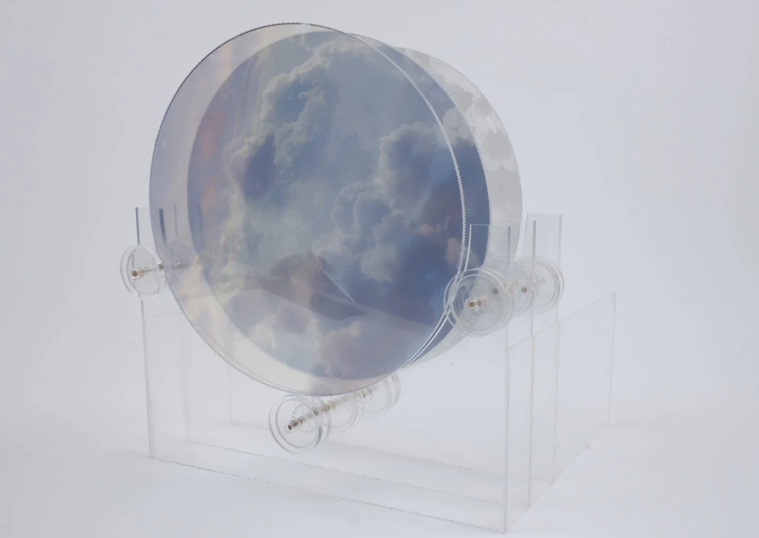 Inspired by the window and the act of staring out of it when we think, this piece intends to resemble moving clouds so that one can stare into it and continue thinking. It is connected to pressure sensors, wherein when people tap their feet, the discs start moving and compel them to stare at it.