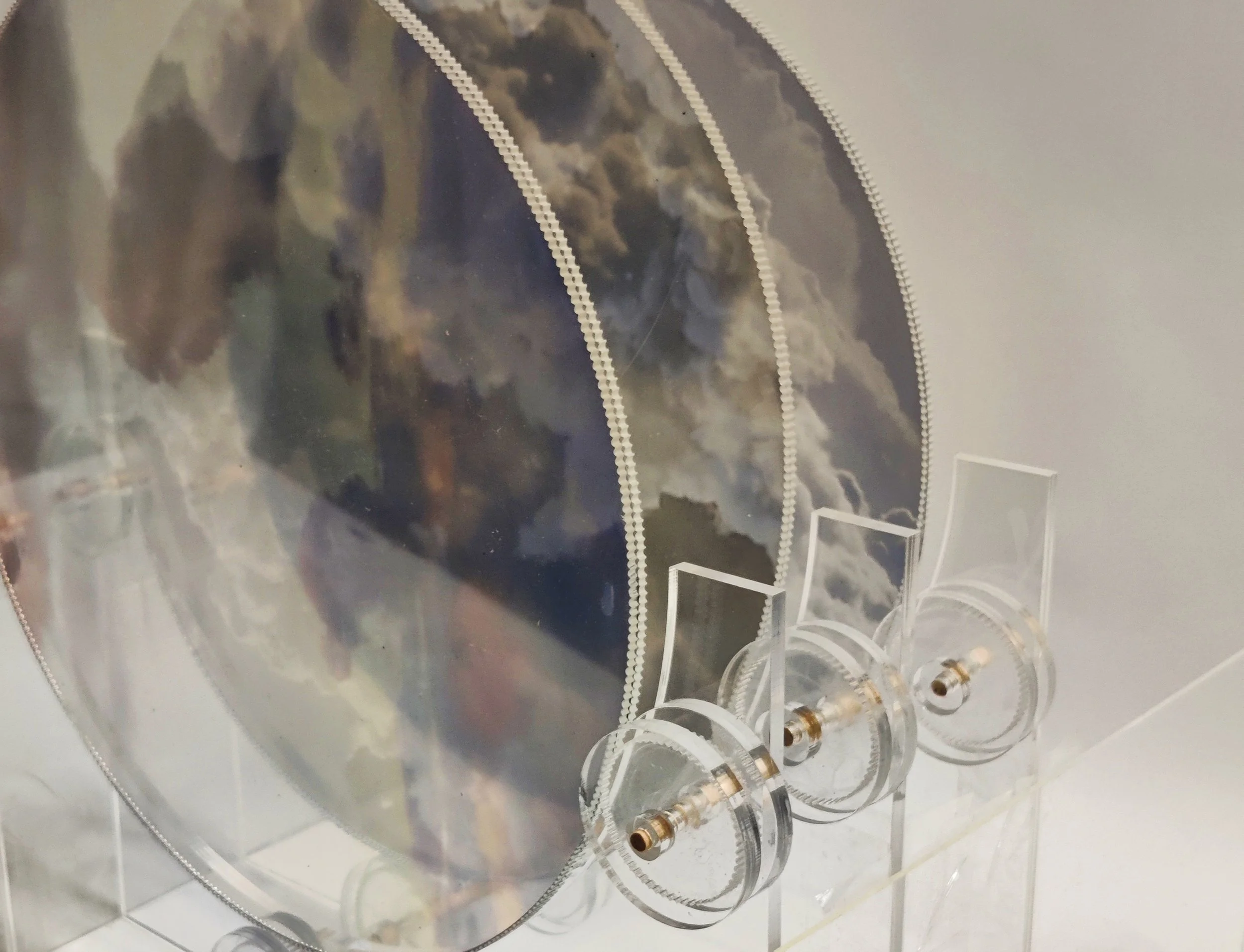 It integrates the subtle micro-motions of our bodies—like tapping, finger movements, or swiveling in a chair—during moments of deep thought. These fidgety actions activate the circular movements of the discs, allowing users to lose themselves in thought, much like gazing out of a window and reflecting quietly.
